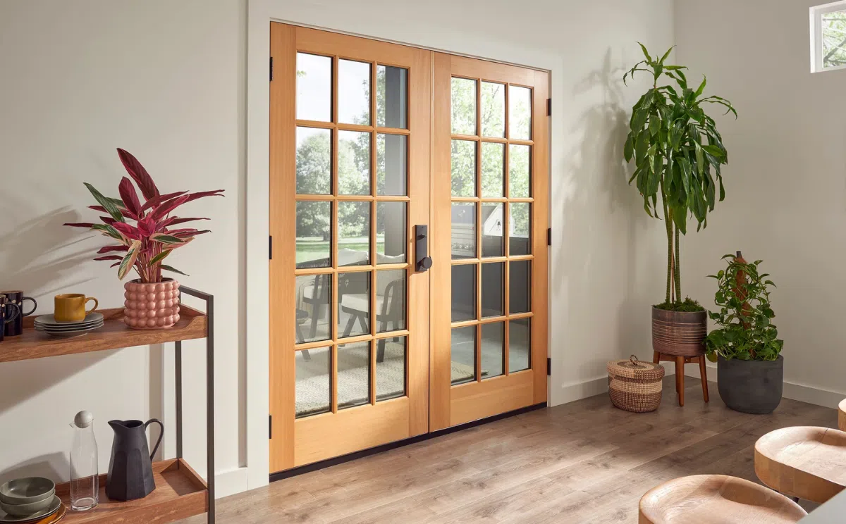 Cửa kính trong khung gỗ tinh tế, mang lại vẻ nhẹ nhàng và thanh lịch. Rất phù hợp cho phòng làm việc hoặc cửa sau.